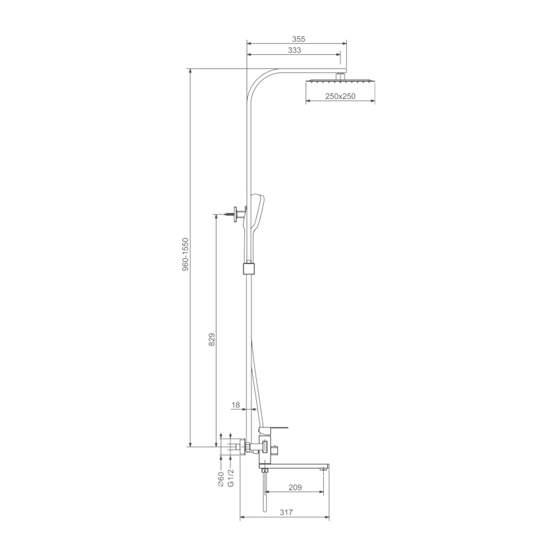 Верхний душ размером 250х250 мм регулируется по высоте благодаря телескопической штанге и по наклону с помощью встроенного шарнира, что обеспечивает максимальный комфорт и удобство использования. Самоочищающиеся силиконовые форсунки предотвращают образование известкового налета и сохраняют чистоту и силу потока воды.