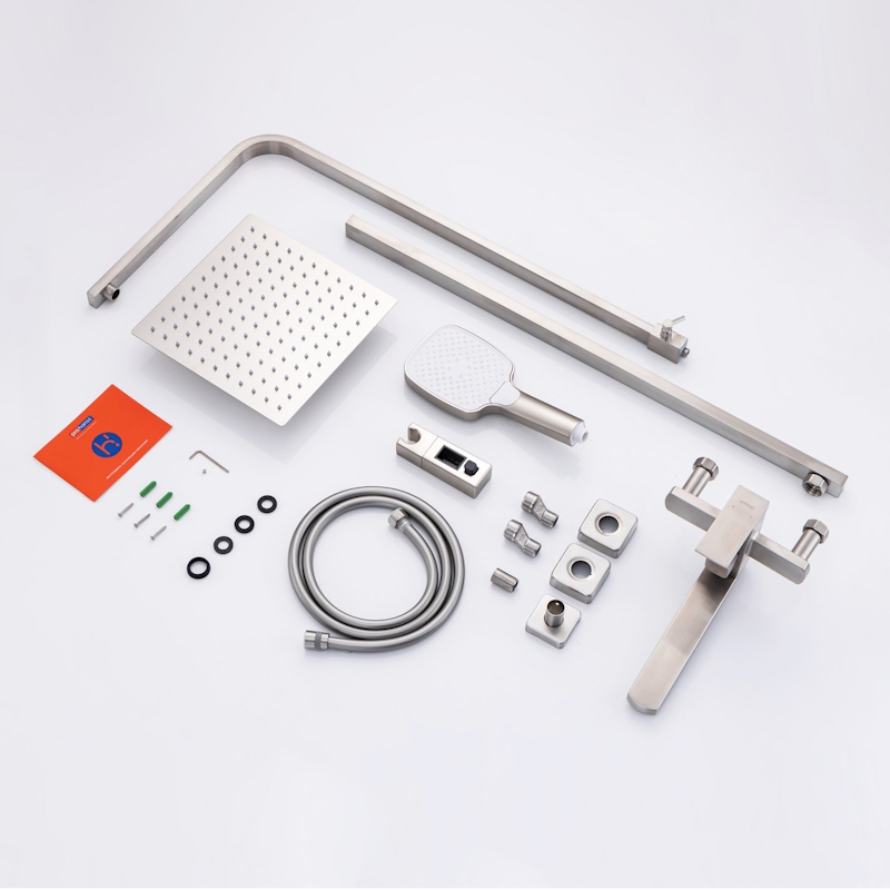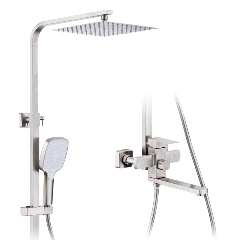 Душевая система с тропическим душем, смесителем, длинным поворотным изливом и ручной лейкой Prohanss P30.24.05, выполненная в угловатом дизайне - идеальное решение для вашей ванной комнаты. Изготовленная из прочной нержавеющей стали, она гарантирует долговечность и надежность использования.