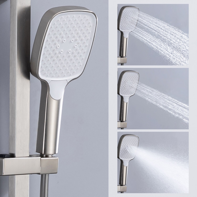 Ручной душ с 3 режимами работы также регулируется по высоте и наклону для оптимального комфорта использования.