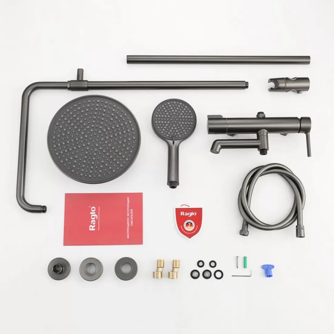 Душевая система Raglo R20.24.09 в графитовом исполнении — стильное и практичное решение для современной ванной комнаты. Модель изготовлена из высококачественной латуни, что гарантирует её прочность, долговечность и устойчивость к коррозии. Матовое графитовое покрытие придаёт системе элегантный внешний вид и позволяет органично вписать её в различные интерьерные решения.