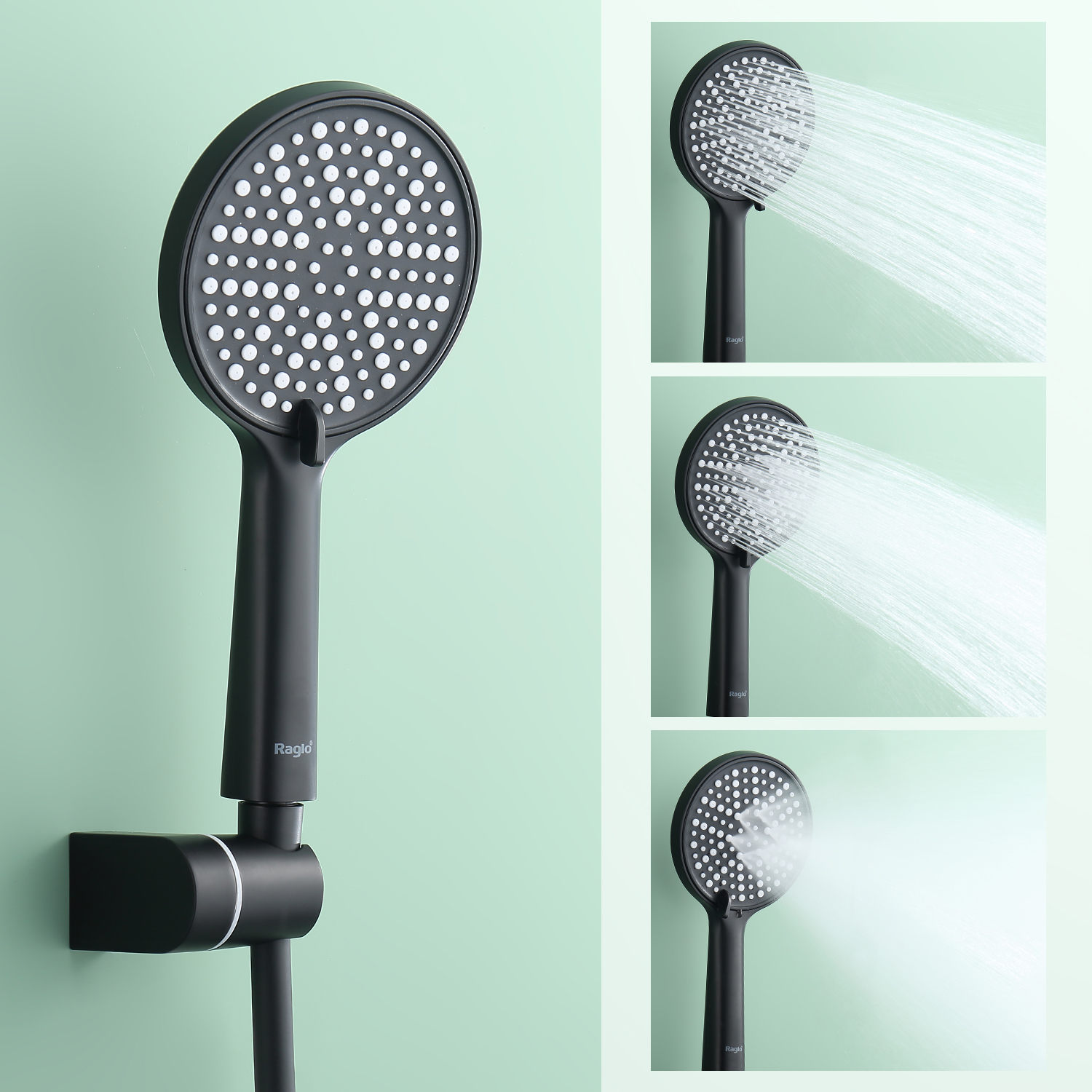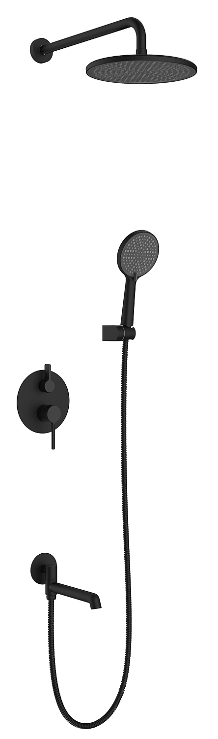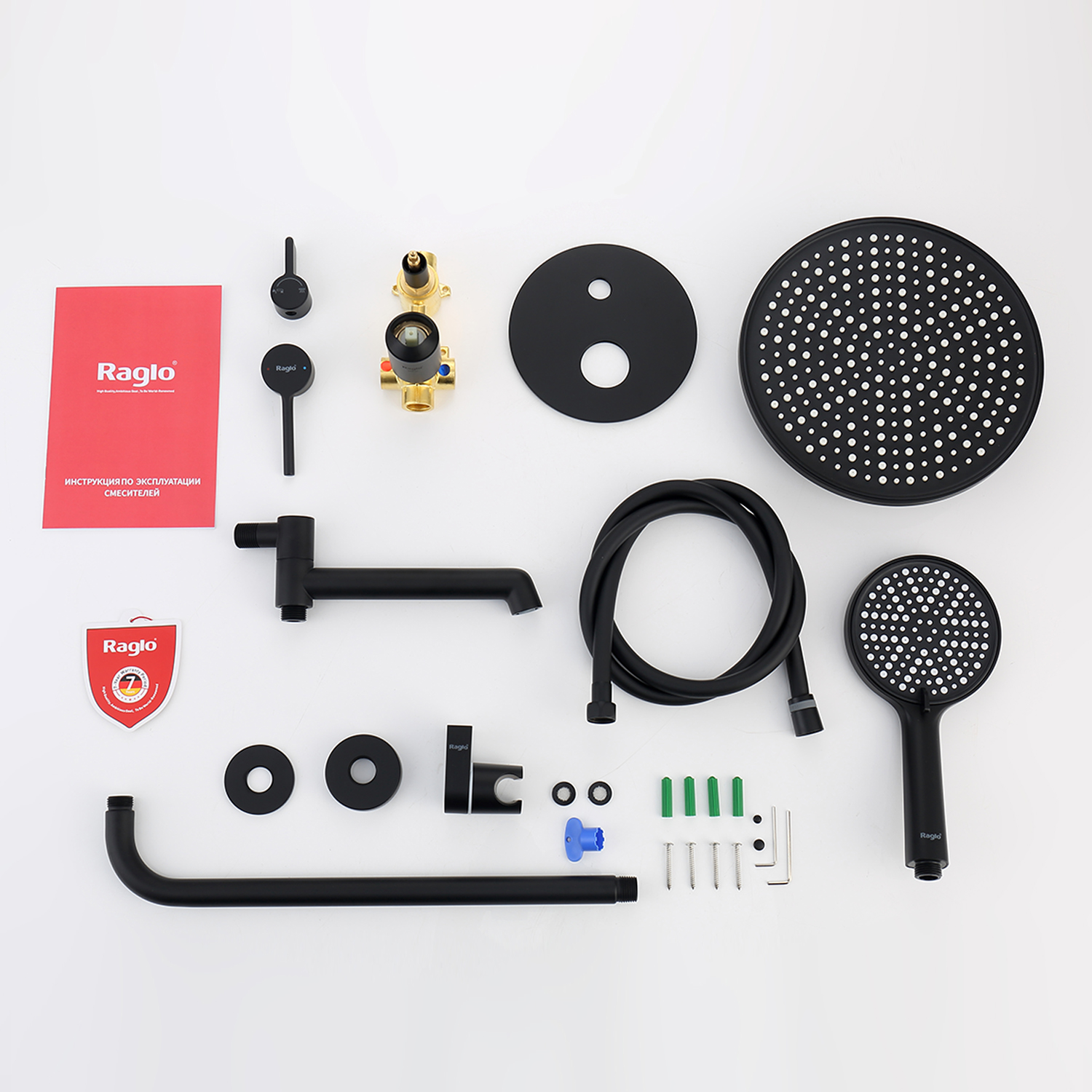 Душевая система Raglo R20.27.06 в чёрном цвете — встраиваемая модель, рассчитанная на установку в стену: внутренние элементы скрываются, а снаружи остаются только функциональные части. Конструкция выполнена из латуни — прочного и коррозионностойкого материала, гарантирующего длительный срок службы. Матовое чёрное покрытие придаёт системе лаконичный современный вид и позволяет органично вписать её в разные интерьерные решения.