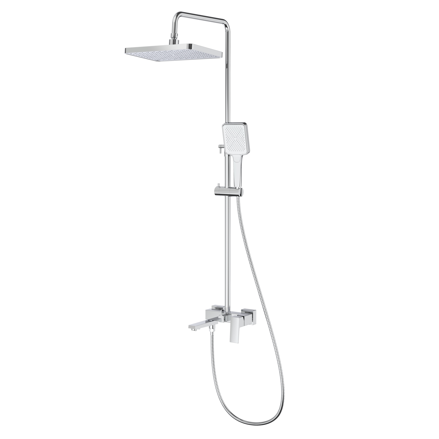Душевая система Splenka S01.24 в хромированном исполнении — настенная конструкция с однорычажным смесителем, объединяющая классический блеск хрома с удобством использования. Основа из латуни обеспечивает долговечность и устойчивость к коррозии. Керамический картридж позволяет точно регулировать температуру и напор воды. В комплект включены: верхний душ (320 × 210 мм), ручной душ с тремя режимами струи (кнопочное переключение), металлический шланг 1,5 м, регулируемая по высоте штанга, держатель ручного душа, а также монтажные элементы — эксцентрики с отражателями. Излив выполнен в каскадном стиле с поворотной конструкцией длиной 18,2 см. Система оборудована аэратором для равномерного потока и защитным хромированием, препятствующим образованию налёта. Высота — 151 см, вылет верхнего душа — 42 см. Стандарт подводки — G 1/2, пропускная способность — до 48 л/мин.