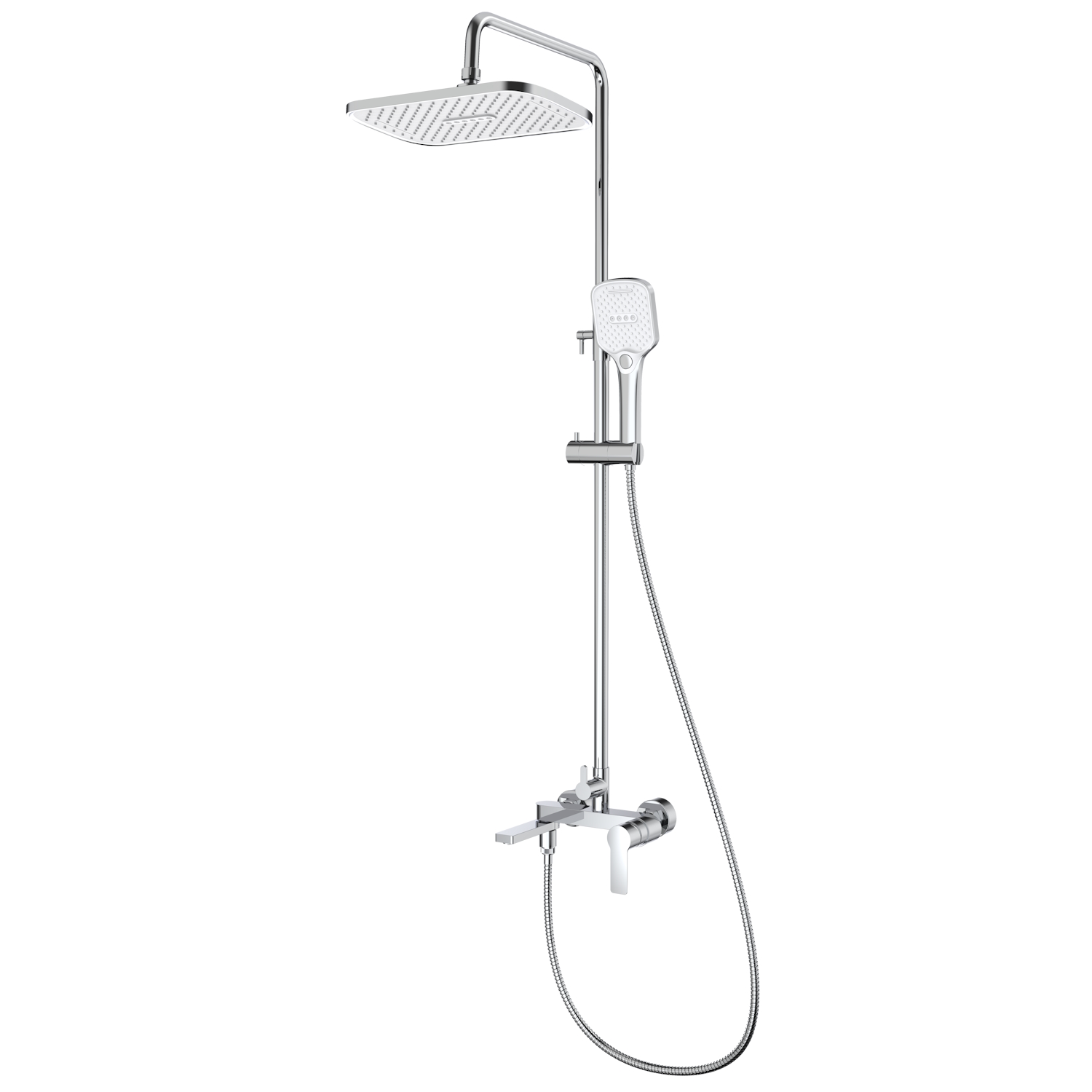 Душевая система Splenka S02.24 в хромированном цвете представляет собой настенную конструкцию с однорычажным смесителем. Латунная основа гарантирует прочность, устойчивость к коррозии и длительный срок эксплуатации. Плавное регулирование температуры и напора воды обеспечивается керамическим картриджем. В комплект включены: верхний душ прямоугольной формы (320 × 210 мм), ручной душ с тремя режимами струи (переключение кнопкой), металлический шланг длиной 1,5 м, регулируемая штанга, держатель для ручного душа и монтажные элементы (эксцентрики с отражателями). Излив каскадного типа имеет поворотную конструкцию (18,2 см), удобную для наполнения ванны. Система оборудована аэратором, обеспечивающим равномерную подачу воды, и защитным хромированным покрытием, которое препятствует образованию налёта и упрощает уход. Высота конструкции — 151 см, вылет верхнего душа — 42 см. Стандарт подводки — G 1/2, пропускная способность — до 48 л/мин.