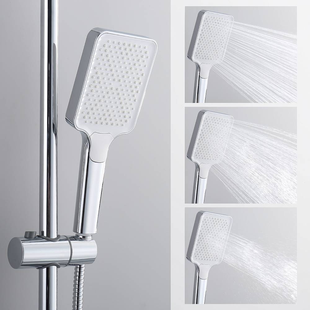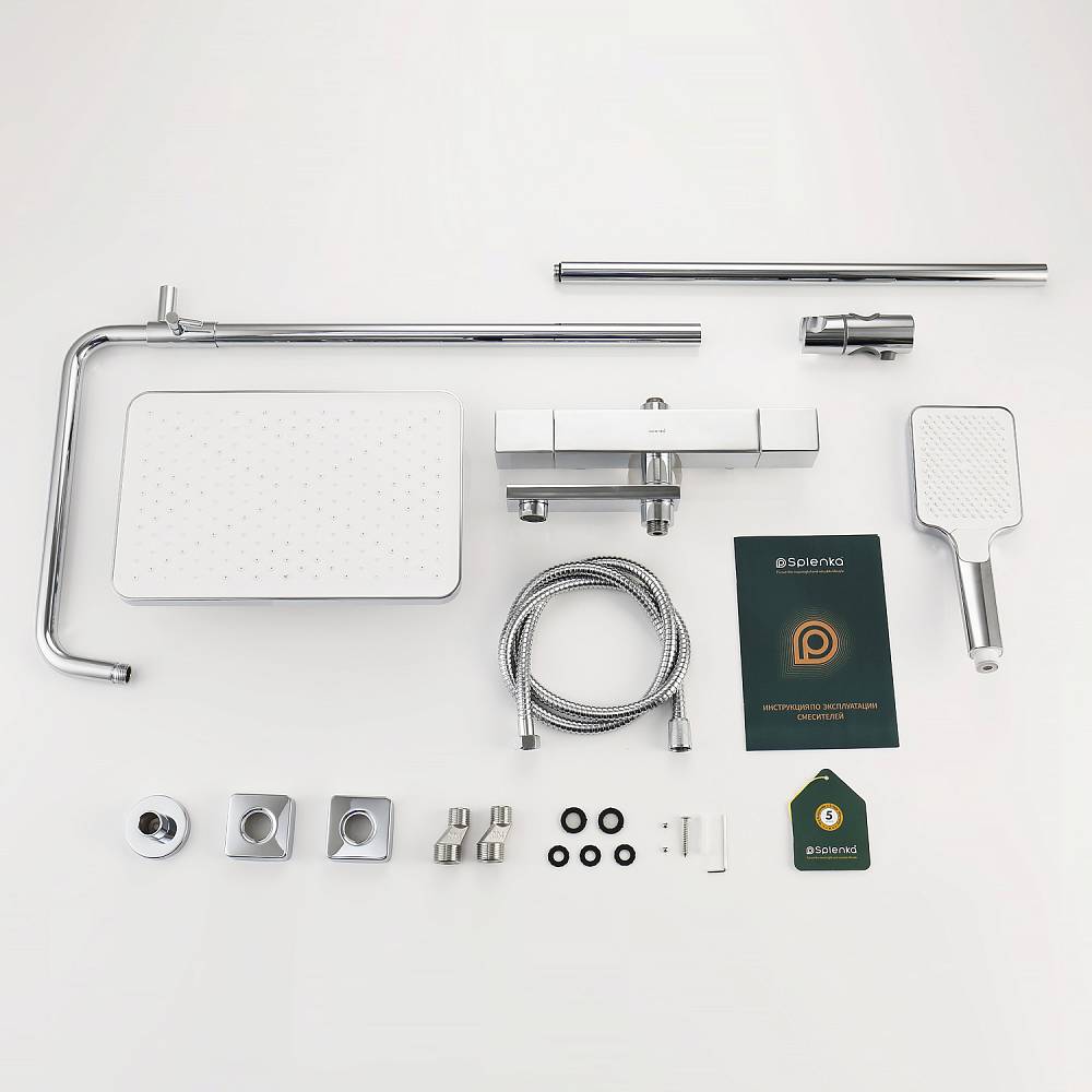 Душевая система Splenka S224.26 в хромированном исполнении с термостатом обеспечивает безопасное и комфортное принятие душа за счёт точной поддержки заданной температуры воды. Латунная конструкция гарантирует долговечность и устойчивость к коррозии. Однорычажное управление регулирует напор, термостат — температуру. В комплект входят: верхний душ (320 × 210 мм), ручной душ с тремя режимами (кнопочное переключение), металлический шланг 1,5 м, регулируемая штанга, держатель душа и монтажные элементы. Каскадный поворотный излив (18,2 см) удобен для наполнения ванны. Система оборудована аэратором и имеет защитное хромирование, препятствующее налёту. Высота — 151 см, вылет верхнего душа — 42 см. Подводка — G 1/2, пропускная способность — до 48 л/мин.