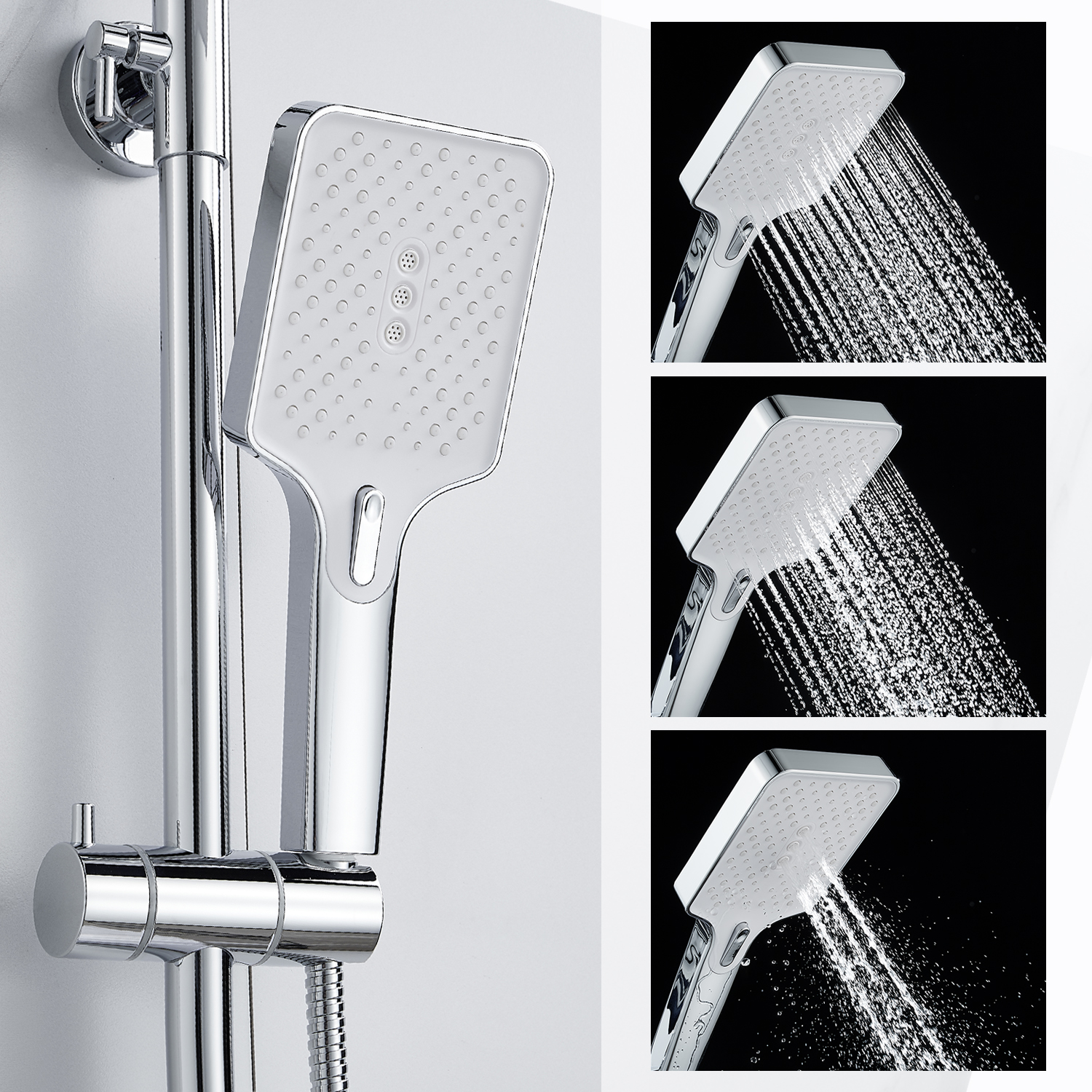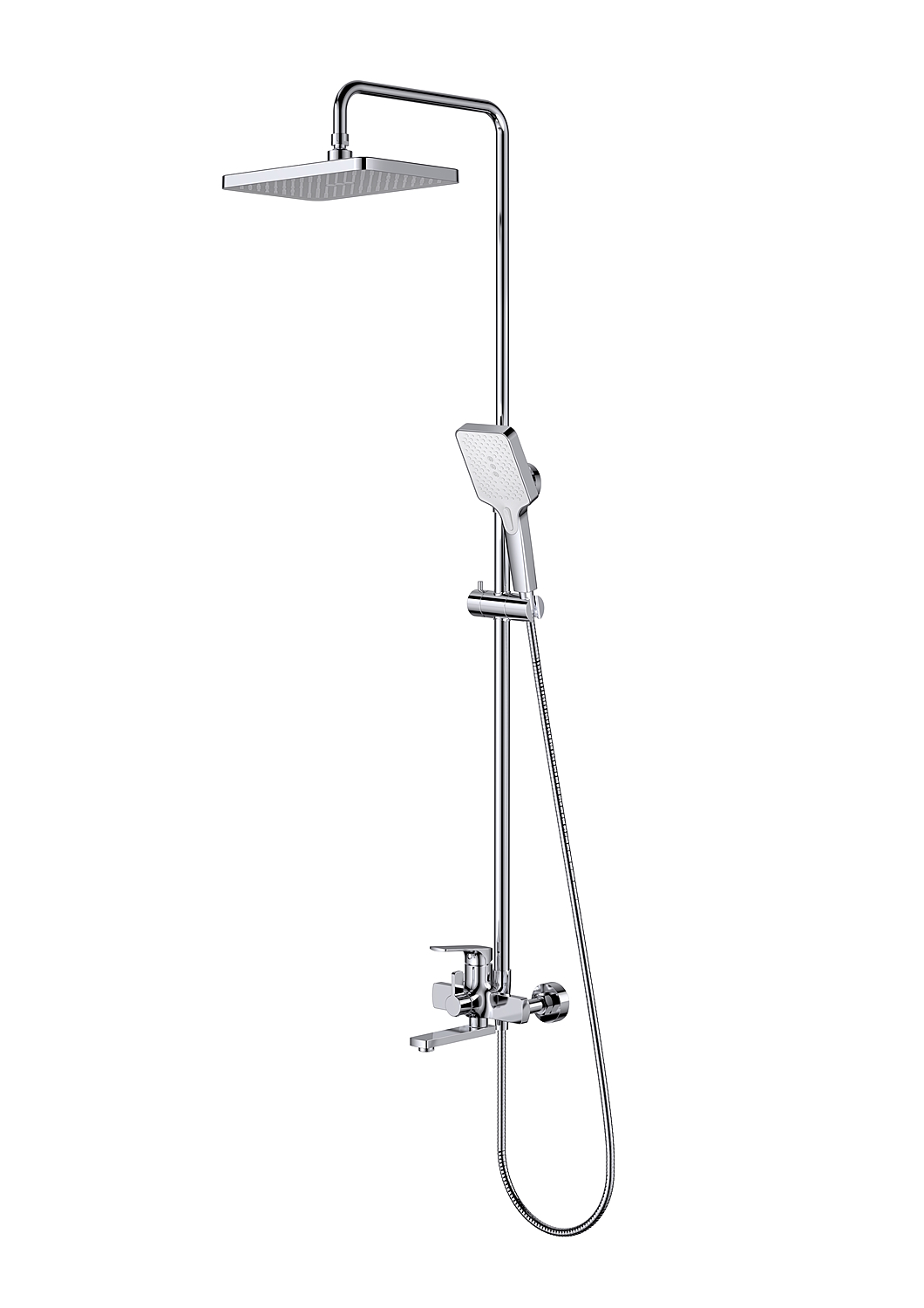 Душевая система Splenka S30.24 в хромированном исполнении — это настенная модель с однорычажным смесителем, сочетающая классический блеск хрома с современной функциональностью. Конструкция выполнена из латуни, что гарантирует прочность и длительный срок эксплуатации. Плавная регулировка температуры и напора воды обеспечивается керамическим картриджем диаметром 35 мм. В комплект входят: прямоугольный верхний душ размером 320 × 210 мм, ручной душ с тремя режимами струи (переключение кнопкой), металлический душевой шланг длиной 1,5 м, регулируемая по высоте штанга, держатель для ручного душа, а также все необходимые монтажные элементы — эксцентрики с отражателями. Излив имеет каскадную форму и поворотную конструкцию, удобную для наполнения ванны. Система оснащена аэратором, который смягчает поток воды и обеспечивает равномерную подачу. Хромированное покрытие не только придаёт изделию элегантный внешний вид, но и обладает защитными свойствами, препятствуя появлению налёта и упрощая уход. Переключение между режимами работы осуществляется следующим образом: для направления потока на ручной душ нужно повернуть дивертор на изливе на 90 градусов, а управление верхним душем производится отдельным рычагом, расположенным в нижней части штанги. Общая высота конструкции составляет 151 см, вылет верхнего душа — 42 см. Стандарт подводки — G 1/2, пропускная способность системы достигает 48 л/мин.