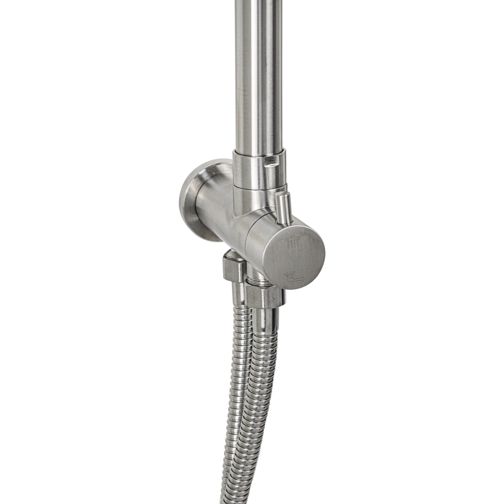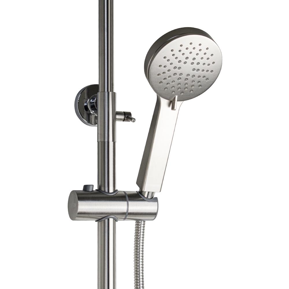 Душевая стойка тропический душ с круглыми лейками впишется в современную обстановку ванной комнаты. Произведена из нержавеющей стали с матовым покрытием. Керамический переключатель работает даже при минимальном давлении воды, выдерживая свыше 300 000 рабочих циклов. Переключается поворотом ручки дивертора. Верхний душ произведен из нержавеющей стали и имеет шаровое крепление, что позволяет менять угол наклона. Работает в режиме «Тропический дождь» создавая мягкий обволакивающий поток струи, равномерно покрывают тело, массируя и тонизируя кожу. Силиконовые форсунки защищены от известковых отложений и легко поддаются чистке. Встроенный аэратор равномерно распределяет поток воды, делая гигиенические процедуры комфортными. Лейка произведена из высококачественной нержавеющей стали, оснащена силиконовыми форсунками с функцией защиты от грязи и известковых отложений. Держатель лейки может менять угол поворота на 180° и регулироваться по высоте.