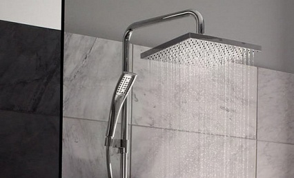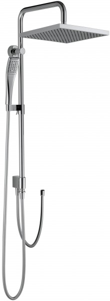 Основу стойки составляет высококачественная латунь с безупречным хромированным покрытием, дополненная современными пластиковыми элементами. Центральное место занимает впечатляющая квадратная панель верхнего душа размером 28 на 28 сантиметров, которая может менять угол наклона для создания идеального водного массажа.