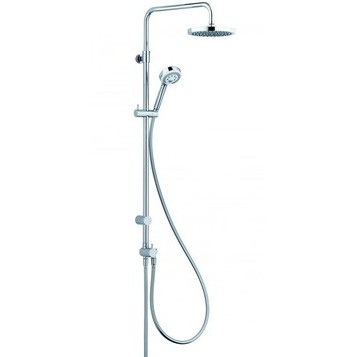 Душевая стойка KLUDI LOGO NEO 6809305‑00 в хромированном исполнении представляет собой немецкую модель из коллекции Logo для настенного монтажа. Она оснащена системой DUAL SHOWER SYSTEM, включающей верхний и ручной душ. Конструкция выполнена преимущественно из латуни с пластиковыми элементами, имеет глянцевую хромированную поверхность. Высота штанги составляет 134 см с возможностью регулировки в диапазоне от 98 до 129 см. Верхний душ имеет диаметр 20 см и оснащён шаровым шарниром, а ручная лейка — диаметр 9,6 см с одним режимом струи. В комплект входит душевой шланг длиной 160 см с двойной оплёткой и защитой от перекручивания. Расход воды через верхний душ составляет 13 л/мин, через ручную лейку — 16 л/мин. Конструкция позволяет регулировать положение кронштейна (вверх‑вниз и влево‑вправо), а также угол наклона лейки на 10°. Управление потоками осуществляется с помощью рычажного переключателя.