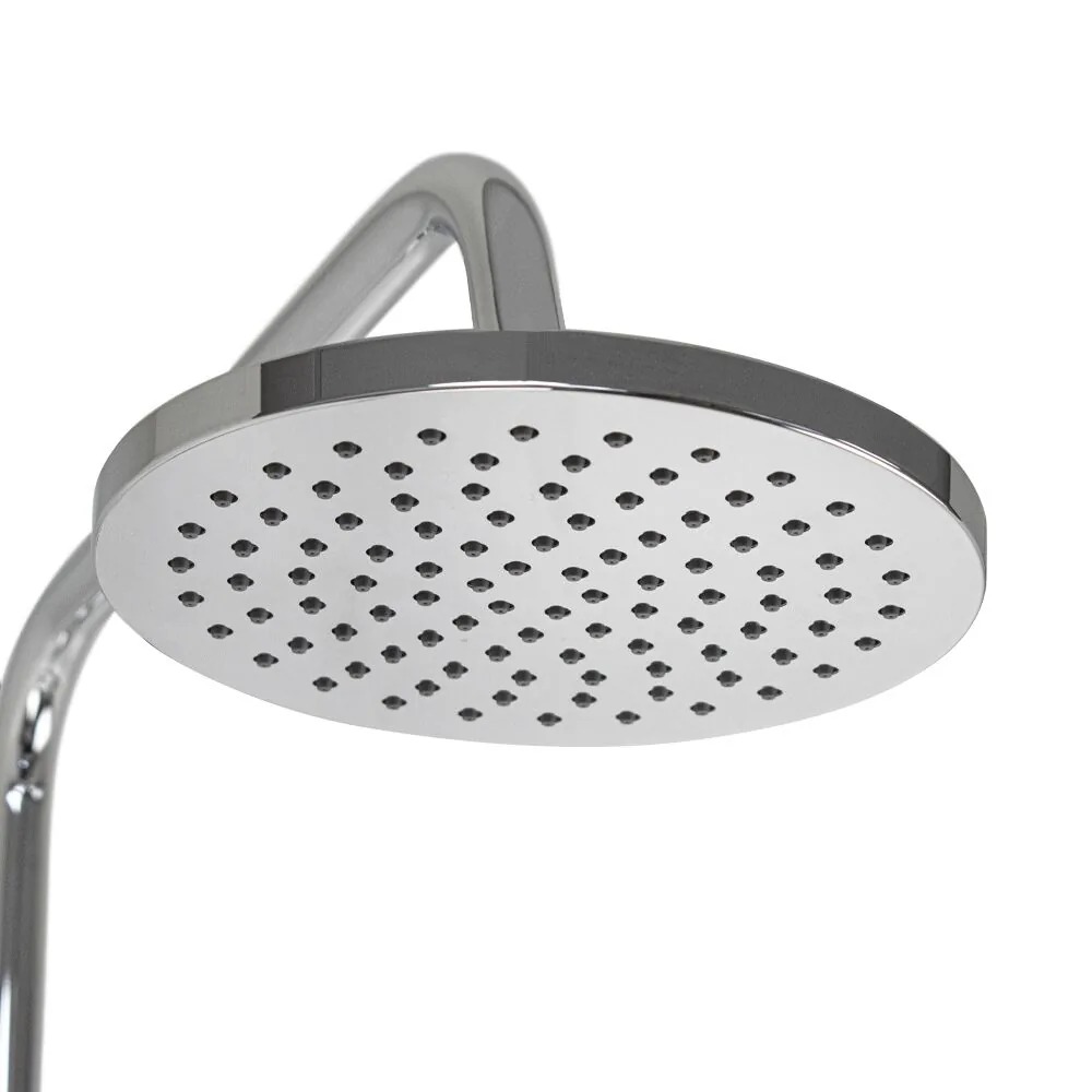 Душевая стойка тропический душ с круглыми лейками впишется в современную обстановку ванной комнаты. Произведена из нержавеющей стали с хромоникелевым покрытием, износостойким и блестящим. Керамический переключатель работает даже при минимальном давлении воды, выдерживая свыше 300 000 рабочих циклов. Переключается поворотом ручки дивертора. Верхний душ произведен из нержавеющей стали и имеет шаровое крепление, что позволяет менять угол наклона. Работает в режиме «Тропический дождь» создавая мягкий обволакивающий поток струи, равномерно покрывают тело, массируя и тонизируя кожу. Силиконовые форсунки защищены от известковых отложений и легко поддаются чистке. Встроенный аэратор равномерно распределяет поток воды, делая гигиенические процедуры комфортными. Лейка произведена из высококачественной нержавеющей стали, оснащена силиконовыми форсунками с функцией защиты от грязи и известковых отложений. Держатель лейки может менять угол поворота на 180° и регулироваться по высоте.
