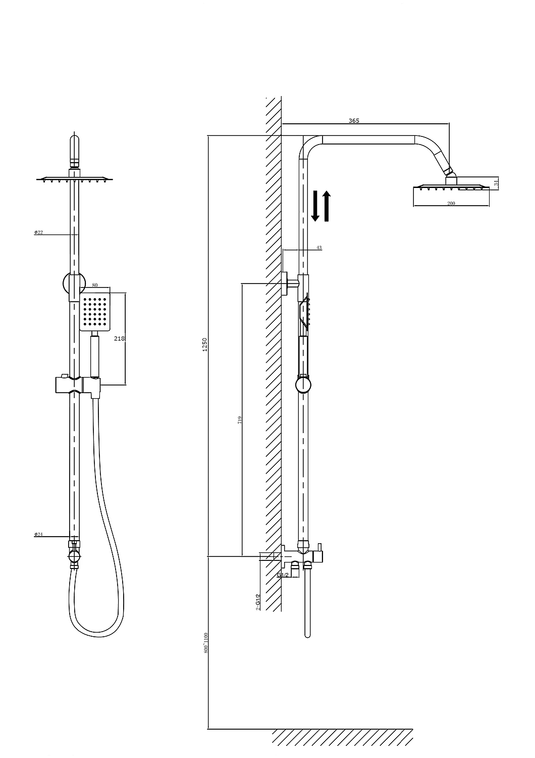 Стойка монтируется на стену с использованием стандартной подводки 1/2 дюйма, что делает установку простой и универсальной. В комплект входят все необходимые элементы: душевая штанга, тропический душ, ручная лейка, поворотный держатель и душевой шланг.