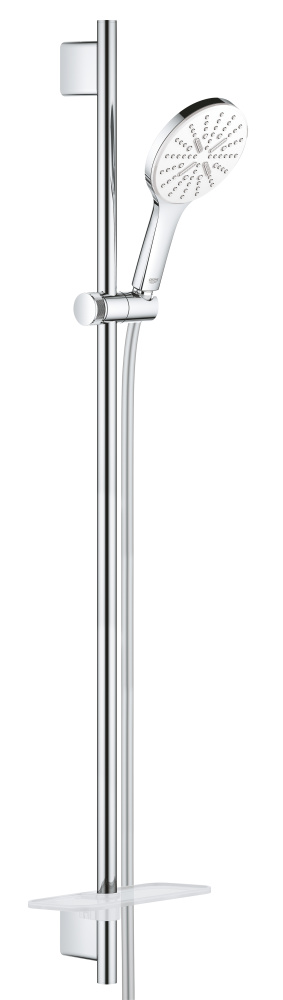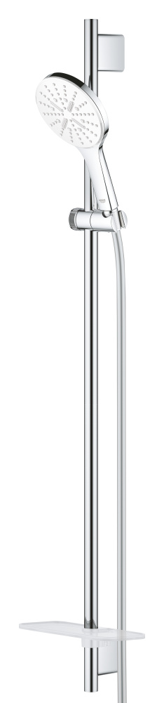 GROHE Rainshower 130 SmartActive с белой душевой панелью, который отличается современным дизайном и производительностью. Изготовленный в Германии, он поставляется с душевым шлангом без скручивания Silverflex 1750 мм, штангой 900 мм и полочкой для организации вашего душевого пространства.