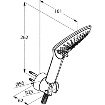Гарнитур выполнен из латуни и пластика, имеет глянцевое хромированное покрытие, которое защищает от царапин и сохраняет блеск. В комплект входят душевая лейка, шланг, настенный держатель и крепёжный набор.