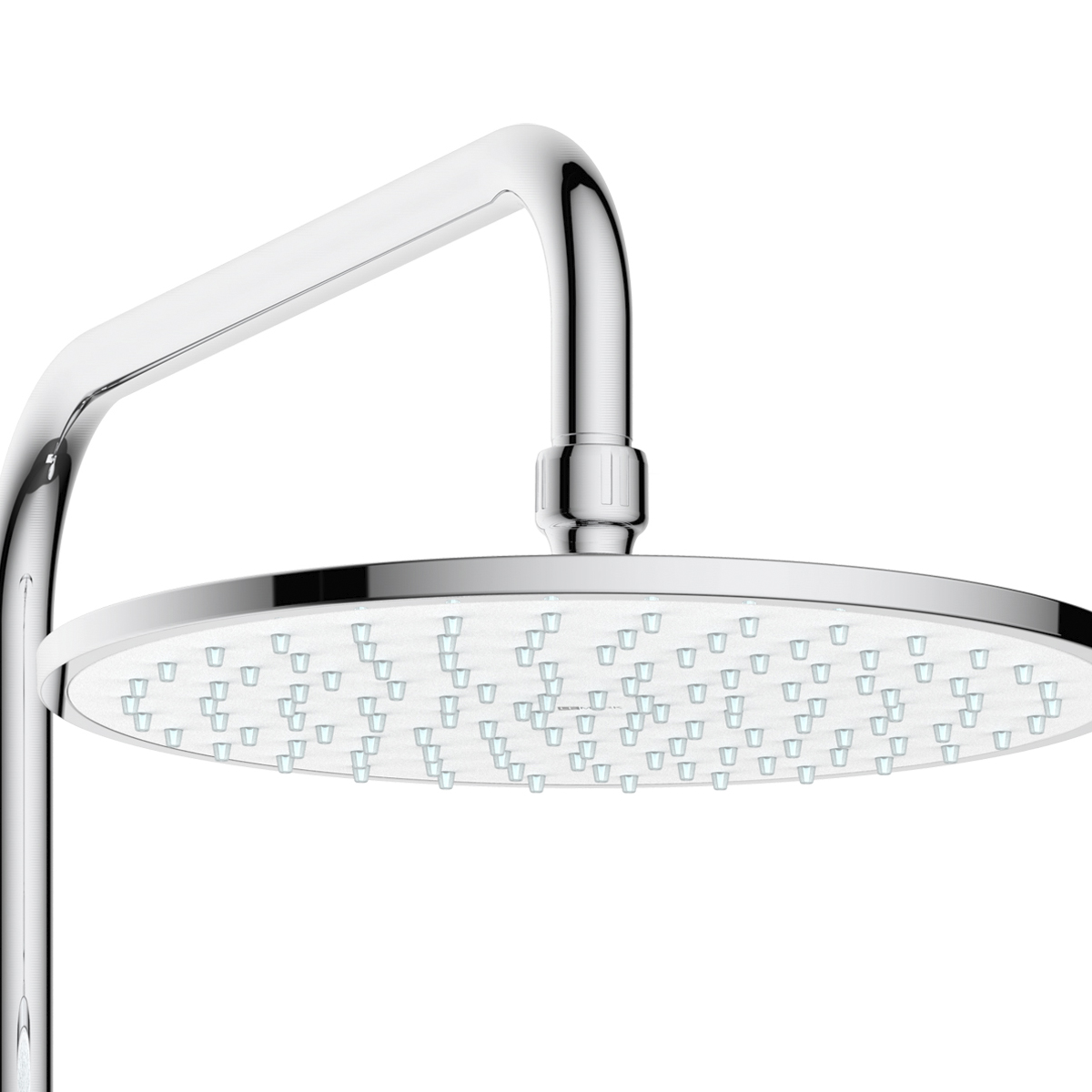 Центральным элементом является впечатляющая верхняя лейка «Тропический душ» диаметром 25,6 см, создающая потрясающий эффект настоящего ливня. Дополняет комплект трехрежимная ручная лейка размером, которая предлагает различные варианты подачи воды.
