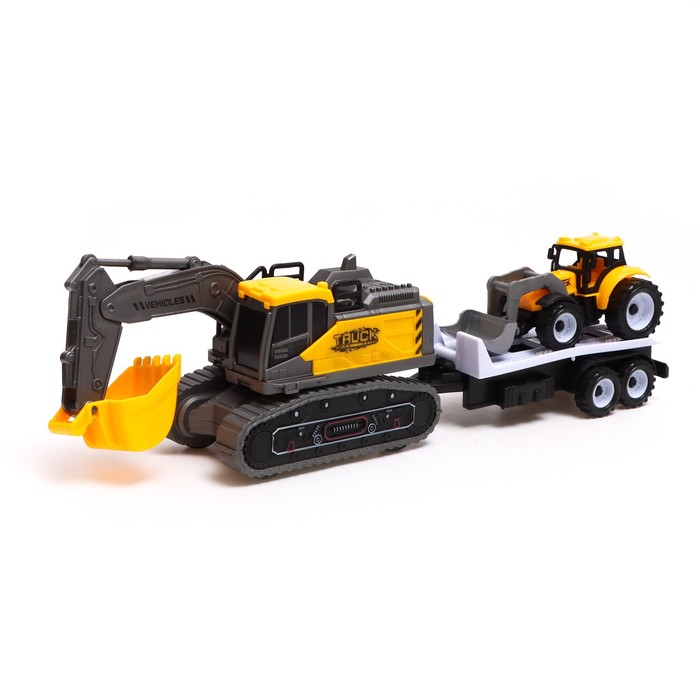 Этот замечательный инерционный экскаватор с прицепом и трактором станет отличным дополнением к игровой коллекции вашего ребёнка! Игровой набор в ярком дизайне с функциональными деталями подарит ребёнку часы увлекательных сюжетных игр и позволит ему почувствовать себя настоящим строителем.