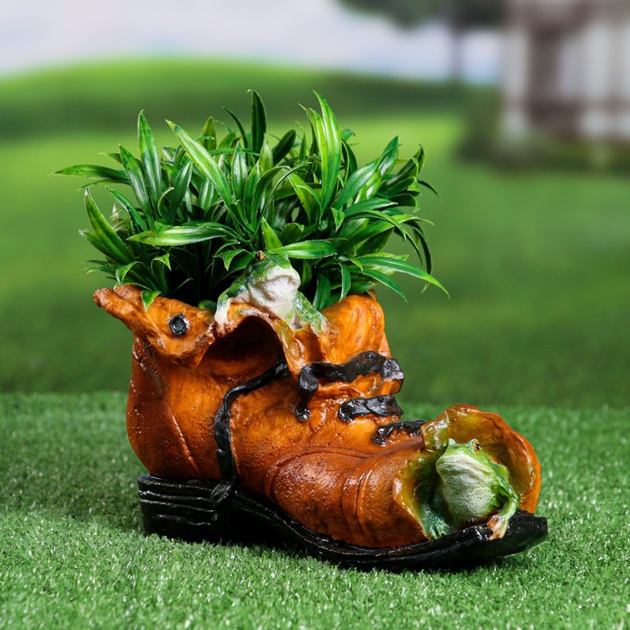 Фигурное кашпо "Ботинок с лягушками" коричневое, 24х14х14см