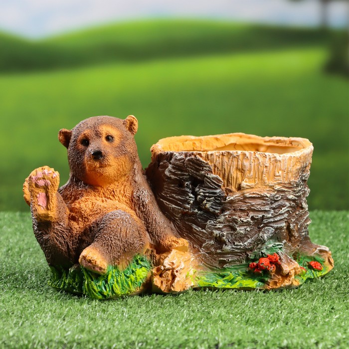 Фигурное кашпо "Медвежонок у пня", 13х25см