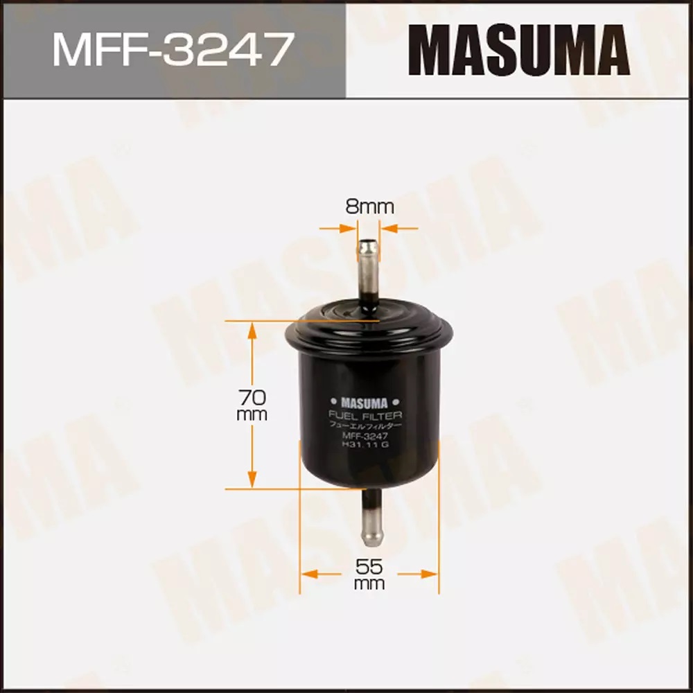 Применимость: Nissan Primera (P11) 90-, Sunny 90-, March 92-02. Топливные фильтры Masuma эффективно очищают бензиновое и дизельное топливо, защищая двигатель и обеспечивая его стабильную работу. Компания Masuma производит 4 вида топливных фильтров. Топливный фильтр в баке (погружной) - устанавливается вместе с бензонасосом, полностью соответствует параметрам оригинального фильтра. Дизельный топливный фильтр - используется в топливной системе дизельных автомобилей как для сбора загрязнений, так и для отделения воды и парафинов. Топливный фильтр высокого давления - используется в топливных магистралях инжекторных бензиновых двигателей. Задерживает частицы менее 0,1 мм. Топливный фильтр низкого давления - используется в карбюраторных двигателях. Задерживает частицы менее 0,1 мм. Masuma - это мировой бренд запчастей, комплектующих и расходных материалов для автомобилей. Основная специализация бренда: ресурсные детали для послегарантийного обслуживания азиатских и европейских автомобилей. Стратегия компании - предложить потребителям наилучшее соотношение надёжности и цены запчастей. Вся продукция изготавливается по заказу, технологиям и под контролем головной компании Masuma Auto Spare Parts Co., LTD (Tokyo, Japan) на десятках современных заводов, расположенных в Восточной Азии.