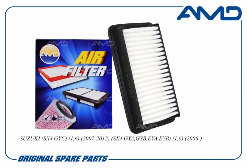 Фильтр воздушный AMD AMD.FA323. Применимость: SUZUKI (SX4 GYC) (1,6) (2007-2012) (SX4 GYA, GYB, EYA, EYB) (1,6) (2006-). Артикул: 1378079J00. Воздушные фильтры AMD производятся в южнокорейском городе Пучхон. Продукция предприятия экспортируется в Европу, США, Индию и другие страны. Качество продукции AMD получило высокую оценку от потребителей в США, странах EC и самой Южной Корее.