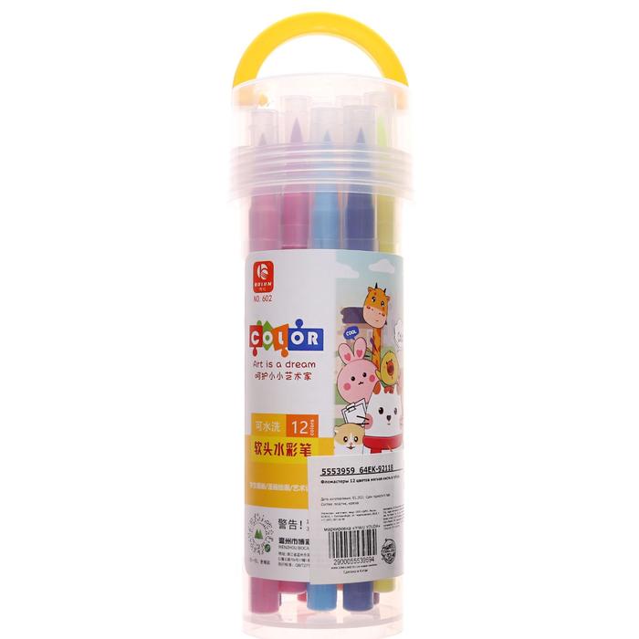 Фломастеры 12 цветов мягкая кисть в тубусе