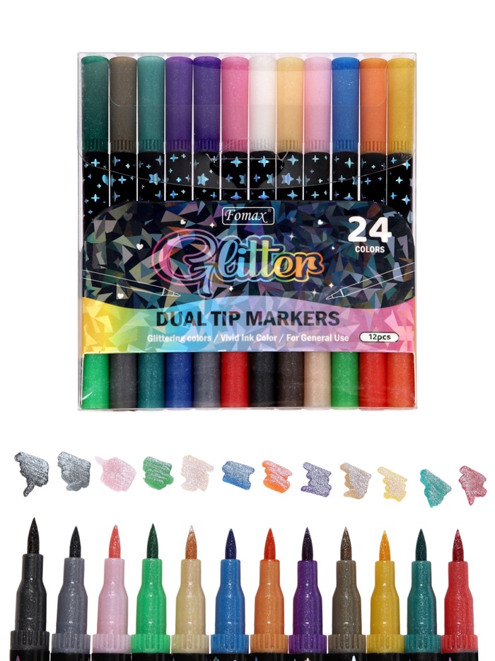 Набор двусторонних фломастеров с блёстками в пластиковой коробке сочетает яркие цвета и удобство использования для рисования и творчества. Каждый маркер имеет две стороны: стандартную и с блёстками, позволяя создавать насыщенные и мерцающие рисунки. Прочный пластиковый кейс бережно хранит фломастеры и упрощает их переноску.