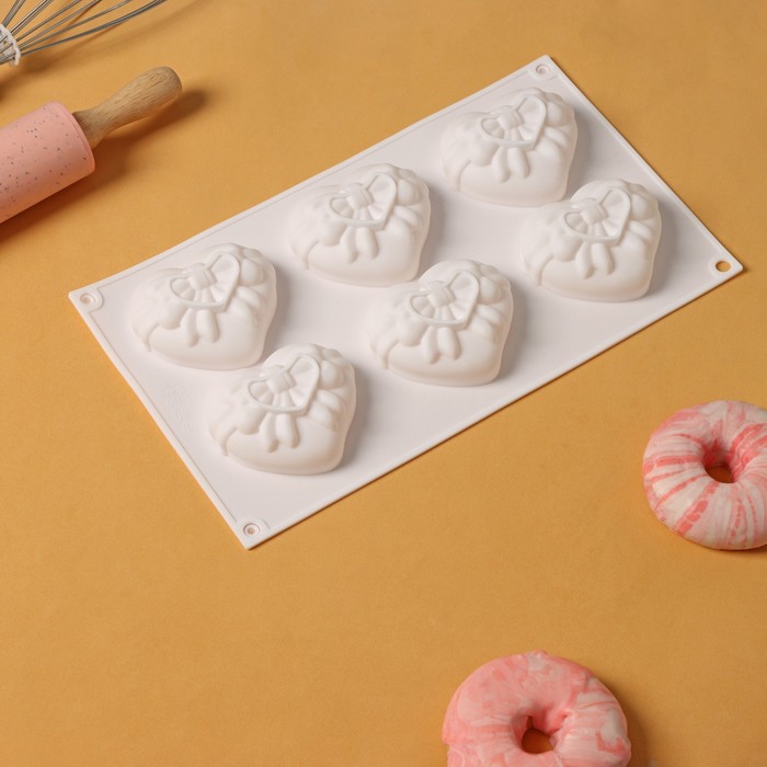 Форма для выпечки и муссовых десертов KONFINETTA "Сердце с бантом" 19х17х6,5см, силикон, цвет белый
