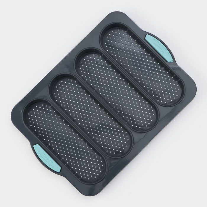Форма для выпечки с перфорацией "Хлеб" 4 ячейки 34,5х23,5х2,5 см (20х6,2х2,4 см), цвет серый 98140