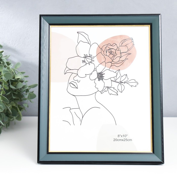 Фоторамка пластик 20х25 см "Дуб синий" внутренняя золотая обводка 28,5х23,5 см