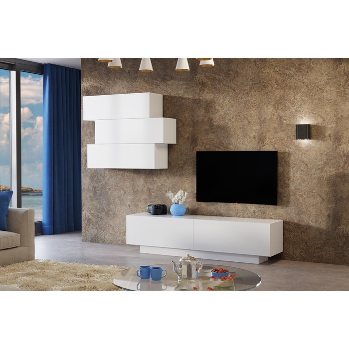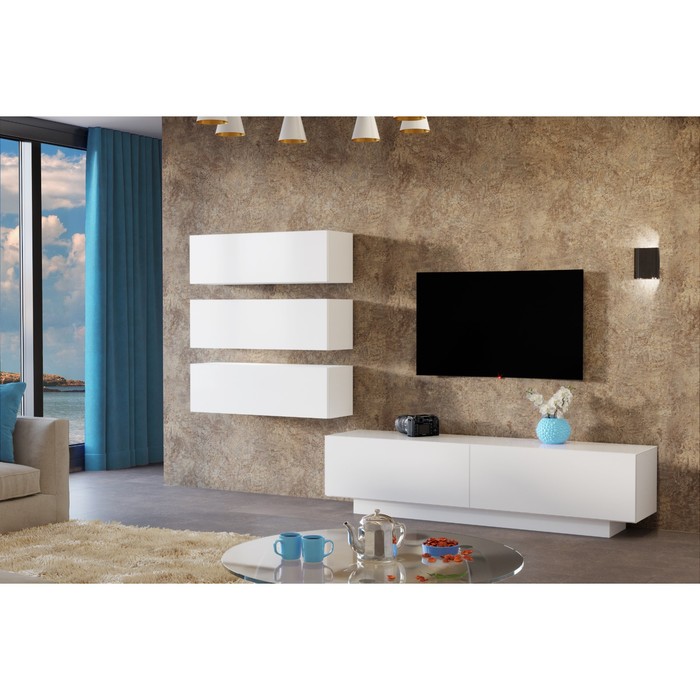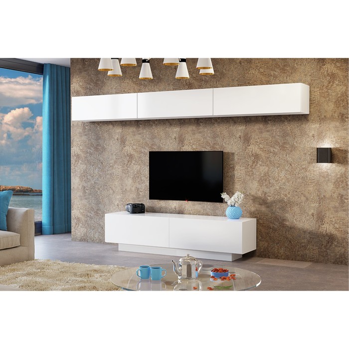 Гостиная «Паола», белый ЛДСП/белое стекло