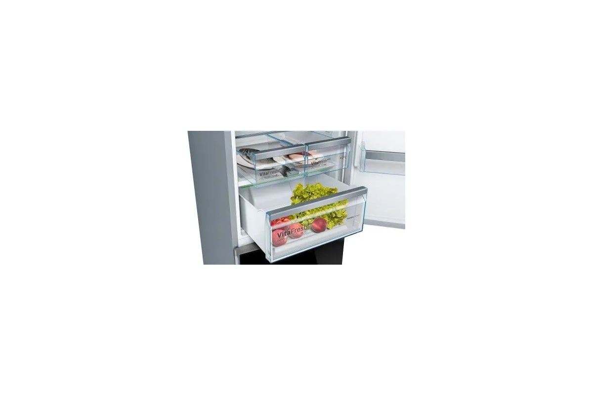 Холодильник Bosch KGN39LB30U — это элегантное и функциональное решение для вашей кухни. Этот двухкамерный холодильник с морозильником, расположенным снизу, выполнен в стильном цвете черного стекла, что придает ему современный и роскошный вид. Габариты устройства составляют 203 см в высоту, 60 см в ширину и 66 см в глубину, что позволяет вместить внутри общий полезный объем в 400 литров. Управление холодильником осуществляется с помощью сенсорных элементов и электронного дисплея, что делает его использование максимально удобным и интуитивно понятным. Встроенная функция Home Connect позволяет управлять холодильником дистанционно, что является отличным решением для тех, кто ценит комфорт и технологичность.