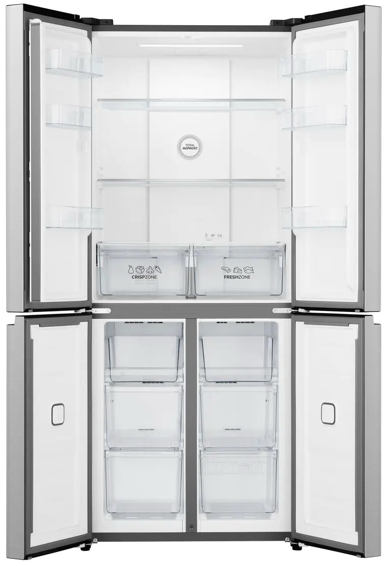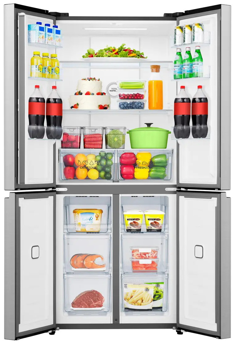 Полезный объём 460 литров холодильной камеры и 149 литров морозильной камеры позволяет разместить большое количество продуктов. Четырёхдверная конструкция Side-by-Side обеспечивает удобный доступ к отделениям. Регулируемые по высоте ножки позволяют установить устройство ровно на неровном полу.