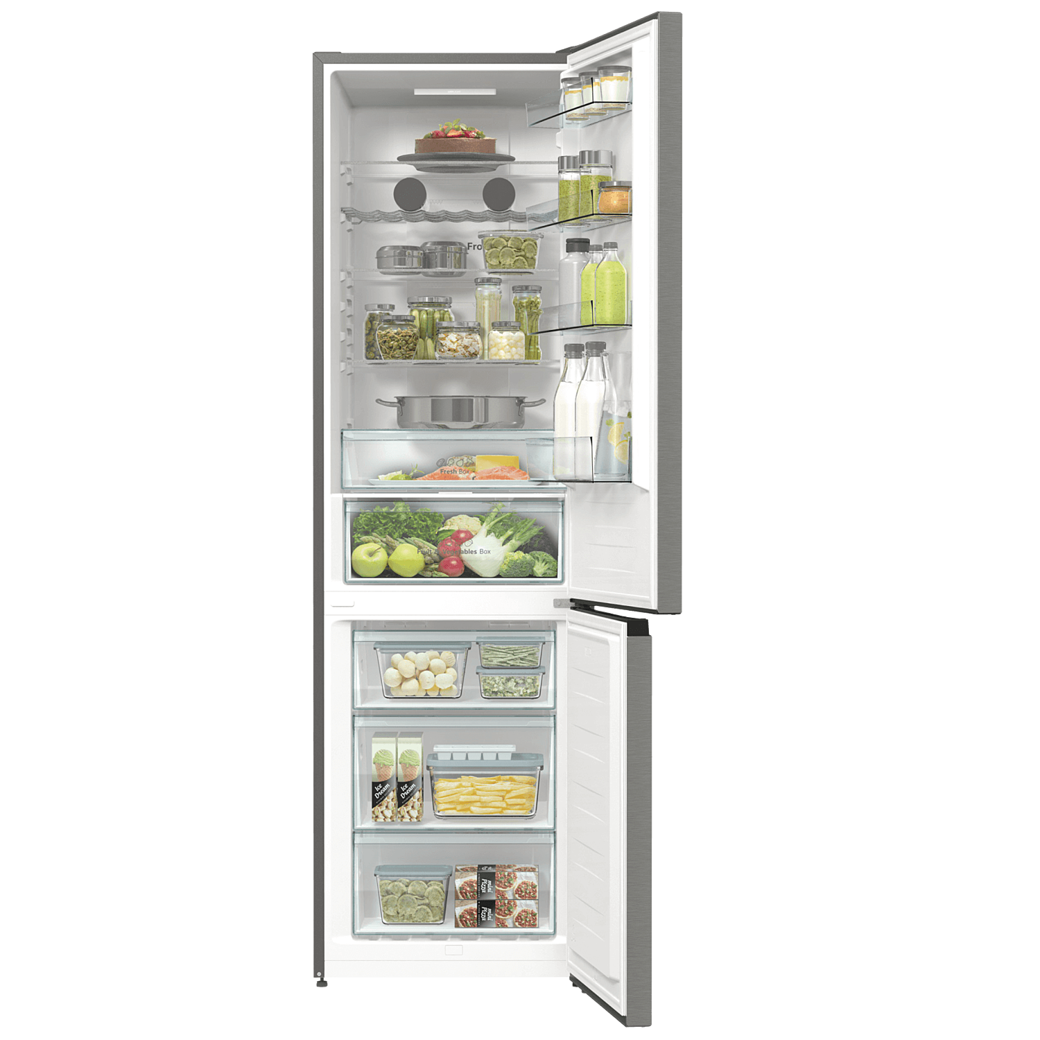 Холодильник с морозильником Hisense RB434N4BC2 серебристого цвета сможет вписаться в любую кухню благодаря нулевому зазору, который обеспечивает свободное выдвигание ящиков и полок при открытой на 90° дверце. За счет технологии Total No Frost внутри прибора не образуется лед, что избавит от необходимости периодической разморозки. Интеллектуальная система Multi Air Flow гарантирует равномерное распределение холодного воздуха, благодаря чему на любой полке в холодильнике будет оптимальная температура.