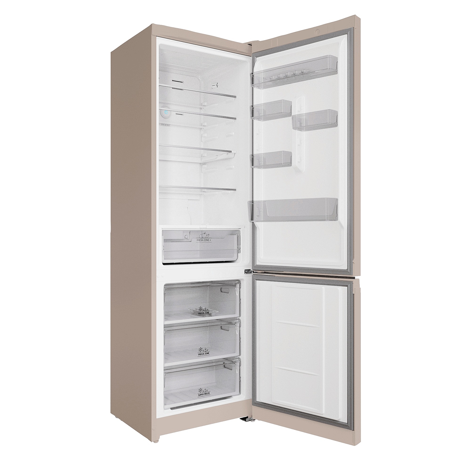 Режим Super Freeze резко снижает температуру в морозильнике для сохранения формы, вкуса и полезных свойств продуктов. Режим «Отпуск» экономично расходует электроэнергию за счет повышения температуры в камерах. Холодильник Hotpoint HT 7201I BZ O3 оснащен электронной панелью управления с дисплеем. Если дверца не закрыта, срабатывает оповещающий звуковой сигнал. LED-подсветка ярко освещает внутреннее пространство внутри холодильного отделения.