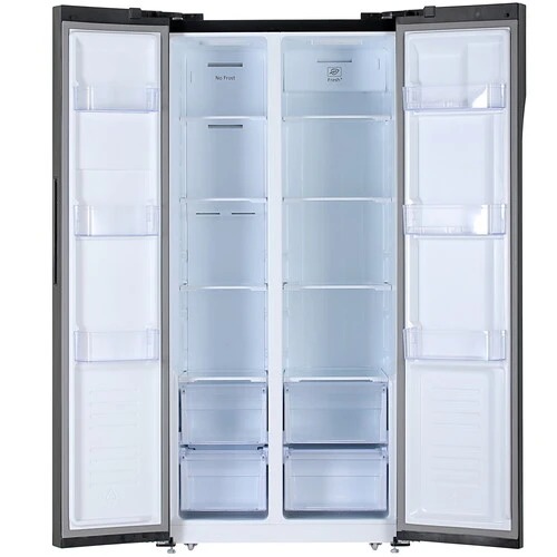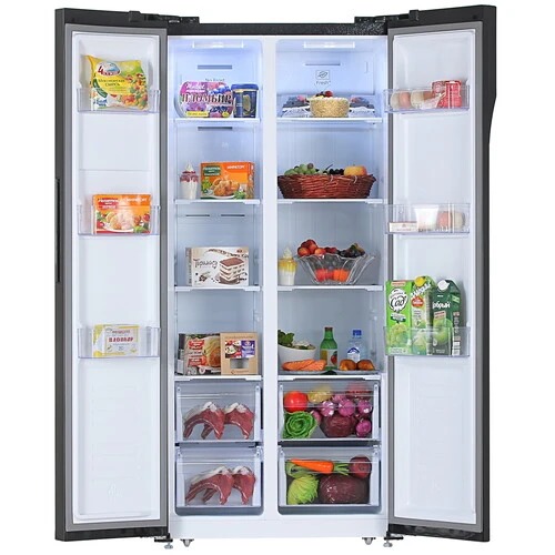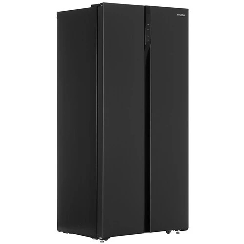 Холодильник с распашными дверями (Side by Side) Hyundai CS4505F с черным цветовым исполнением корпуса предлагает большой объем отделений для хранения продуктов. Особенностью модели являются широкие распашные дверцы для доступа в холодильную камеру и морозильник. На наружной стороне дверцы холодильной камеры находятся дисплей с индикацией температуры и сенсорная панель управления. С ее помощью выполняется выбор режимов и установка температур для каждого из отделений. Функция защиты от детей не позволит поменять настройки в системе управления.