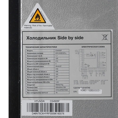 В двухкамерном холодильнике HYUNDAI CS4505F предусмотрена технология No Frost. Это означает, что размораживание холодильной и морозильной камер происходит автоматически. Удаление накопившегося льда со стенок отделений вручную не требуется.