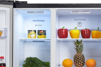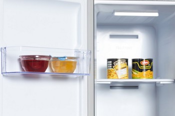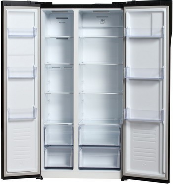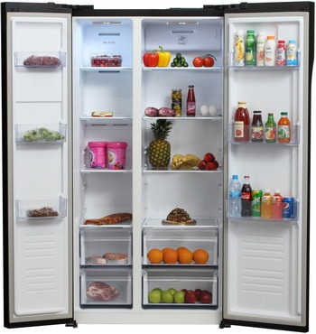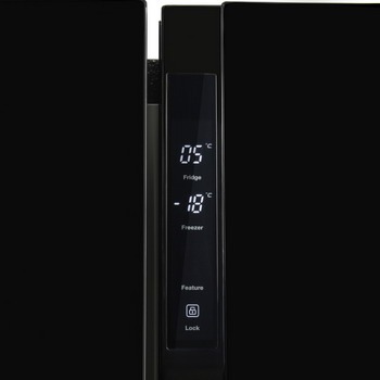 2-х дверный холодильник HYUNDAI CS5003F (тип Side-by-Side) органично соединил в себе практичность и яркий дизайн. Программирование режимов и установка оптимальной температуры для продуктов осуществляются легким касанием кнопок на сенсорной панели управления, размещенной на внешней стороне дверцы холодильной камеры. Сохранить настройки от изменений поможет функция блокировка панели управления. При долгом открытии дверец холодильника HYUNDAI CS5003F звучит звуковой сигнал, информирующий о необходимости закрыть дверцы холодильник.