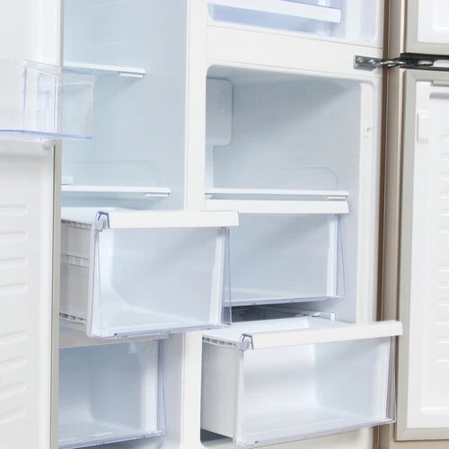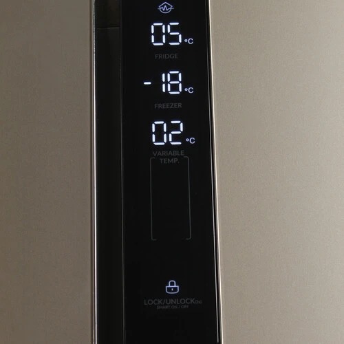 Холодильник в цвете «шампань» имеет солидную вместительность, полезный объем составляет 552 литра. Благодаря этому в нем можно разместить большое количество продуктов и напитков в холодильном отсеке. Морозильный отсек оснащен выдвижными корзинами и обеспечит на многие месяцы сохранность ваших продуктов. Универсальная камера с температурой от минус 4 до плюс 8 позволяет использовать ее и как легкое морозильное отделение и как дополнение к холодильному отделению, а также как зона свежести для скоропортящихся продуктов. Система NoFrost позволит вам забыть о разморозке холодильника, ведь наледь в нем не образуется. Управление холодильником сенсорное, вся информация выводится на крупный LED дисплей. При отключении электроэнергии внутри холодильника длительное время сохраняется заданная температура, а продукты остаются свежими. Инверторный компрессор. Тише, экономичней, надежнее