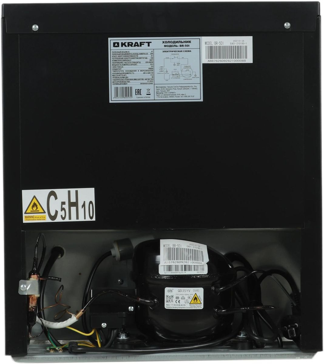 Внешним покрытием модели стали пластик и металл. Ножки холодильника компактного KRAFT BR-50I регулируются по высоте для установки на неровном полу. При необходимости дверцу можно перенавесить для удобства размещения холодильника.