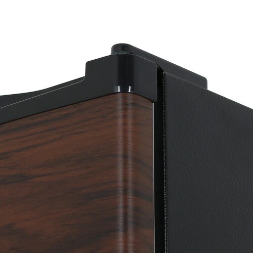 Холодильник компактный MAUNFELD MFF83WD в коричневом корпусе отличается стилизацией под дерево. Перенавешиваемые двери позволяют самостоятельно выбирать, как будет открываться дверь модели – вправо или влево. Герметичная конструкция сохраняет холод внутри до 12 ч при отключении света.