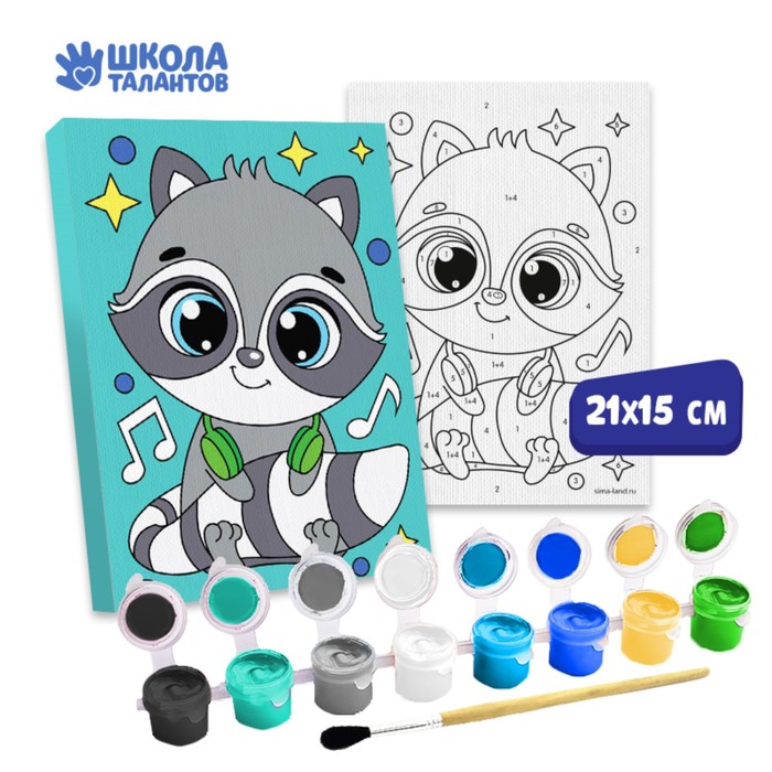 Картина по номерам «Енот с наушниками» 21х15 см