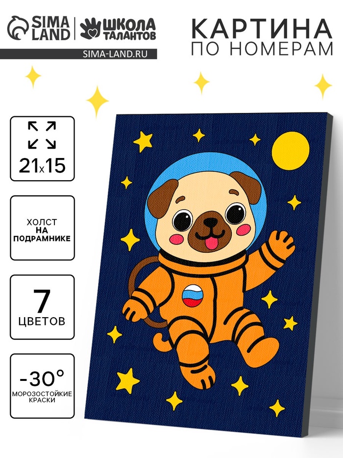 Картина по номерам «Мопс в скафандре», 21×15 см
