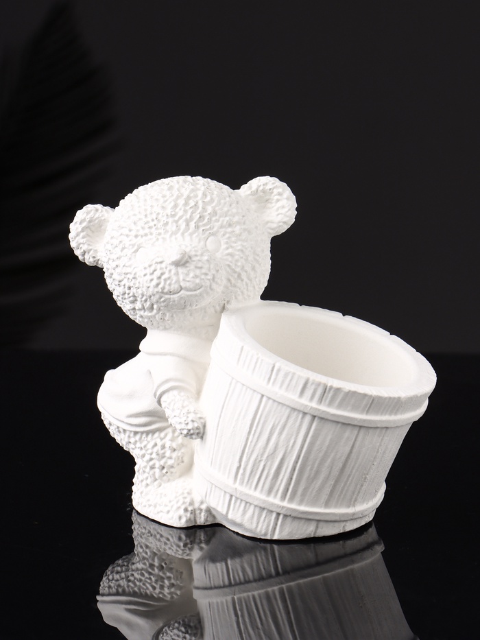 Гипсовое кашпо «Медведь с горшочком» — изящное настольное украшение для интерьера. Фигурка медведя с аккуратным горшочком выполнена из гипса, имеет благородный белый цвет и компактные размеры (9×10×6 см). Идеально подходит для декоративных растений и суккулентов, создавая уютную атмосферу.