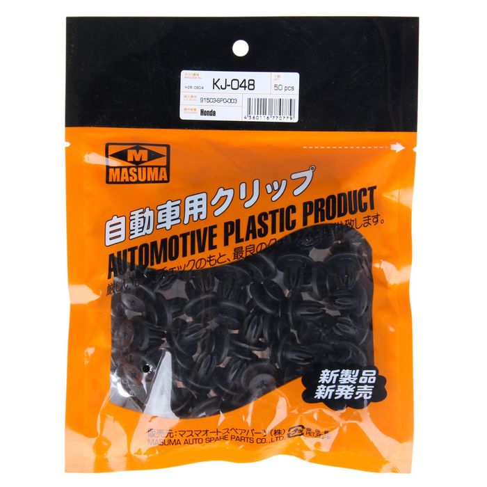 Клипсы Masuma — это детали, с помощью которых крепятся различные облицовочные элементы обшивки автомобиля, подкрылок, брызговиков, бамперов, холдингов и т. д. Решение производителей автомобилей использовать пластиковые крепления вместо металлических позволило снизить массу автомобиля, облегчить процесс снятия деталей.