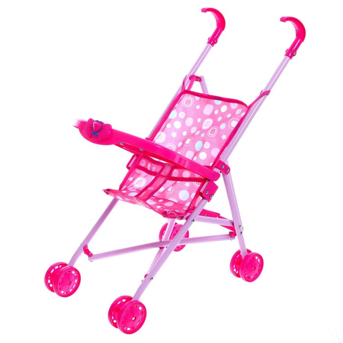 Прогулочная коляска-трость выполнена как настоящая, подойдёт для прогулок с любимой игрушкой летом. Девочка с удовольствием уложит куклу в люльку и выйдет с ней на прогулку.