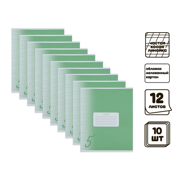 Компл тетр из 10 шт 12л част кос лин Пятерка, обл мел карт, ВД-лак, блок офсет (7108576)