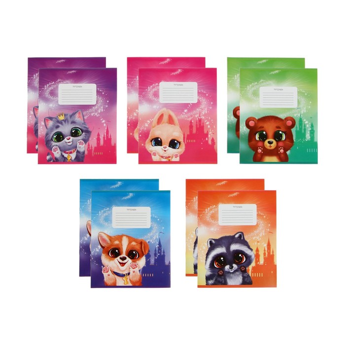 Компл тетр из 10 шт, 12л лин "Пушистики", обл мел карт, ВД лак, бл офс, 5вид*2шт
