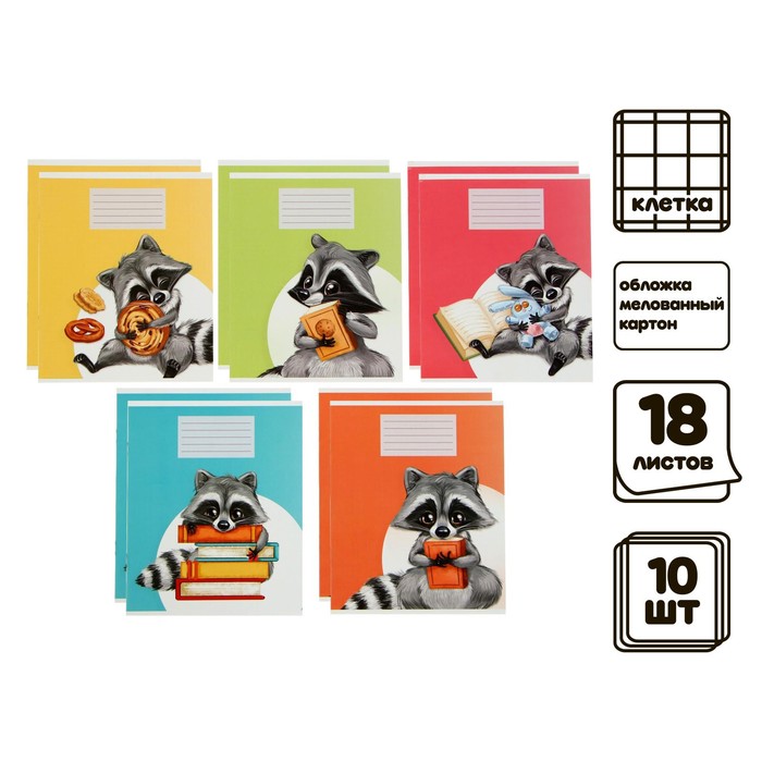 Компл тетр из 10 шт, 18л кл Еноты, обл мел карт, ВД лак, бл офс (4845879)