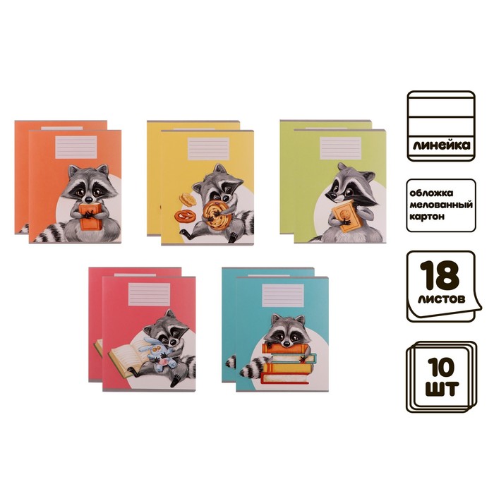 Компл тетр из 10 шт, 18л лин Еноты, обл мел карт, ВД лак, блок офсет (4981369)