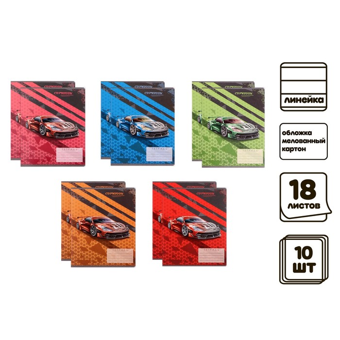 Компл тетр из 10 шт, 18л лин Тачки, обл мел карт, ВД лак, блок офсет (4981370)