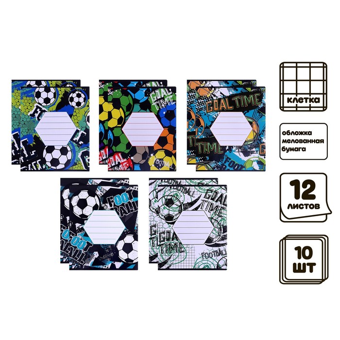 Компл тетр из 10шт 12л кл Футбол, обл мел бум, ВД-лак, бл офсет (9492348)