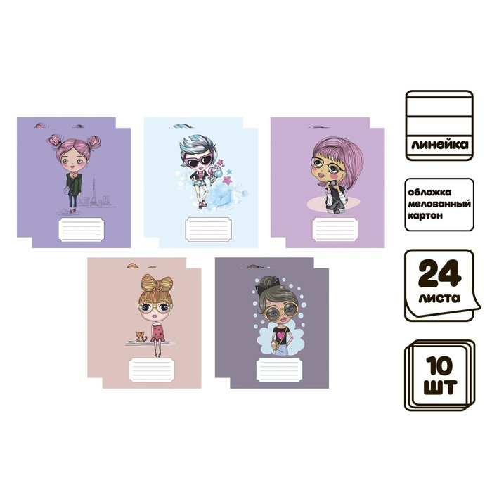 Компл тетр из 10шт 24л лин Fashion, обл мел карт, ВД-лак, бл №2 (7770490)